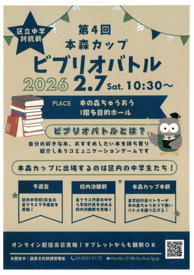 「第4回 本森カップ ビブリオバトル」2学年より代表生徒出場 2026/02/07 2月7日(土)10:30~本の森ちゅうおうにおいて、「第4回 本森カップ ビブリオバトル」が、行われました。本... 2学年鎌倉校外学習 2026/02/05 2月5日(木)2学年において鎌倉校外学習が行われました。 お天気にも恵まれ、比較的あたたかい中での校外学習と... 2学年国語ビブリオバトル学校代表選考会 2026/01/27 2学年では、国語の授業の一環として、ビブリオバトルに取り組んでいます。ビブリオバトルとは、自分のおすすめの本...